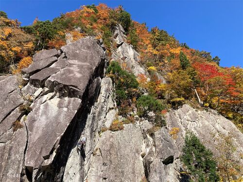 秋の雑穀谷。 山岳会の先輩方とクライミング。 岩と紅葉が最高だ。 この空間にいるだけで、俗世から離れて、清々しい気持ちになれる。 こんな素敵な景色を無料で提供してくれるだなんて、自然って何て寛大なんだろうと思う。